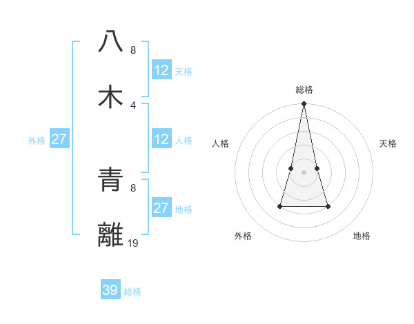 八木 青離さんの総格は39画の5点!