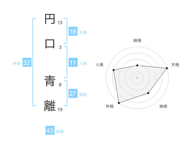 円口 青離さんの天格は16画の5点!