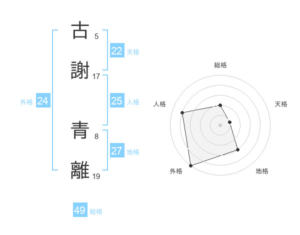 古謝 青離さんの外格は24画の5点!