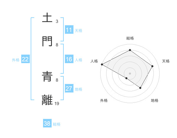 土門 青離さんの総格は38画の4点!