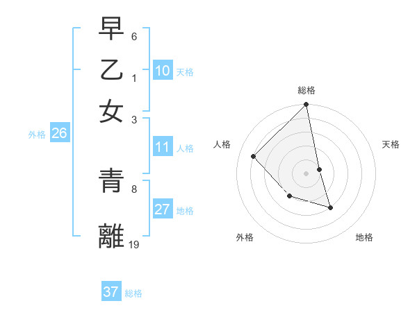 早乙女 青離さんの総格は37画の5点