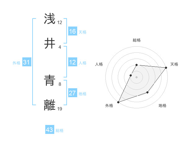 浅井 青離さんの天格は16画の5点!