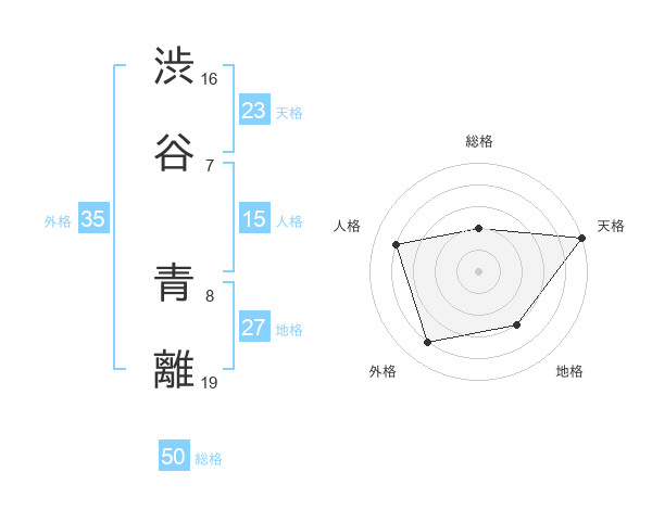 渋谷 青離さんを姓名の画数から五運を鑑定