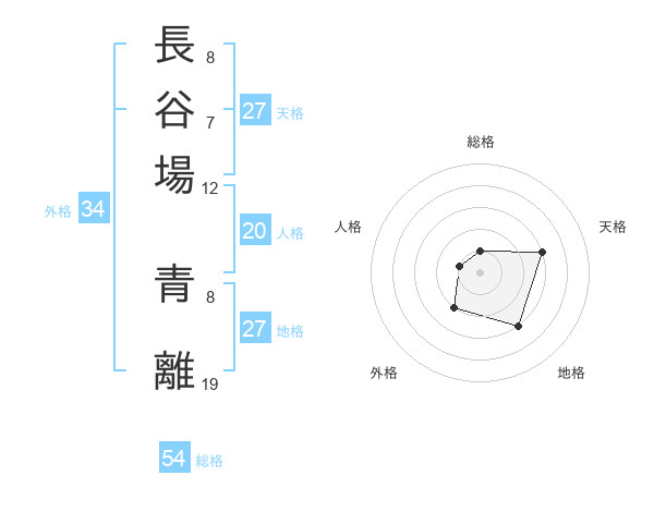 長谷場 青離さんの総格は54画の1点!