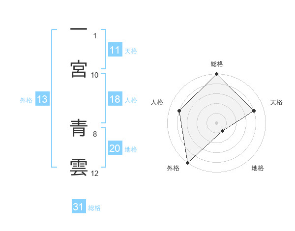 一宮 青雲さんを姓名の画数から五運を鑑定