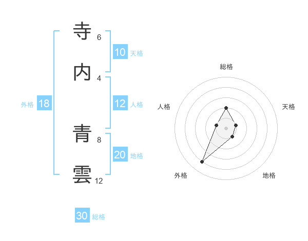 寺内 青雲さんの総格は30画の2点!