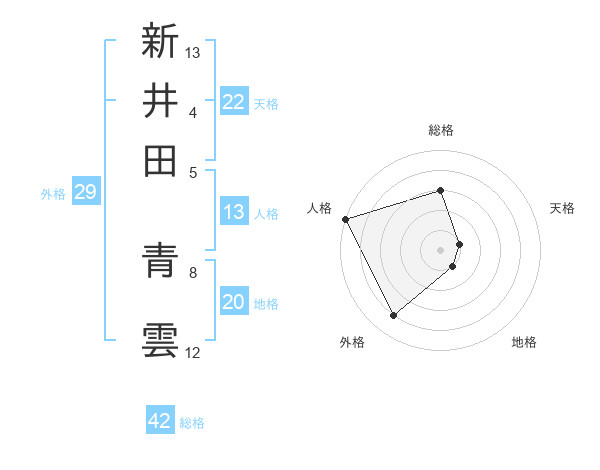 新井田 青雲さんを姓名の画数から五運を鑑定