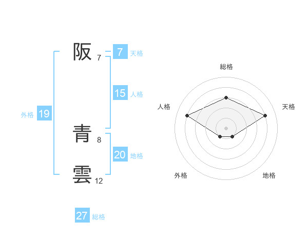 阪 青雲さんの総格は27画の3点!