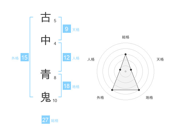 古中 青鬼さんの総格は27画の3点!