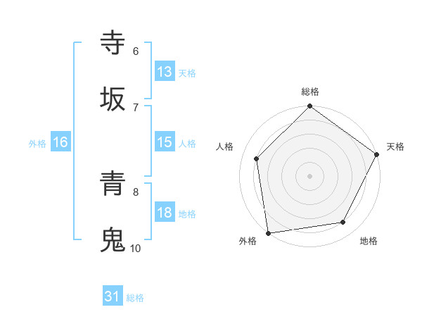 寺坂 青鬼さんの天格は13画の5点!