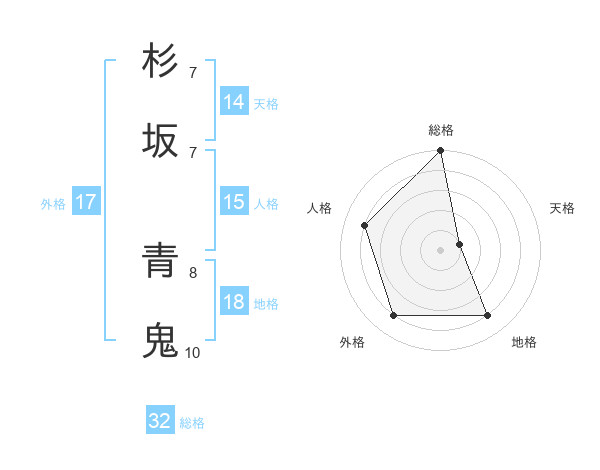 杉坂 青鬼さんの総格は32画の5点!