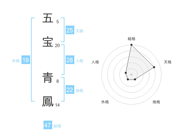 五宝 青鳳さんの総格は47画の5点!