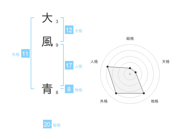 大風 青さんの総格は20画の1点!
