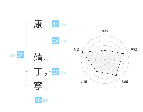 康 靖丁寧さんの外格は27画の3点!