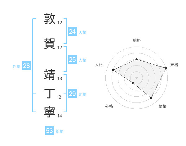敦賀 靖丁寧さんの人格は25画の4点!