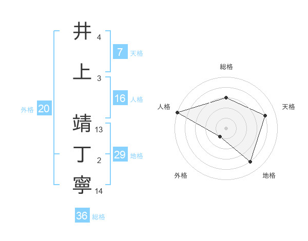 井上 靖丁寧さんを姓名の画数から五運を鑑定