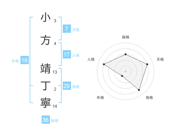 小方 靖丁寧さんの天格は7画の4点