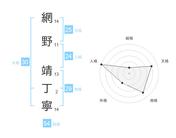 網野 靖丁寧さんの天格は25画の4点!