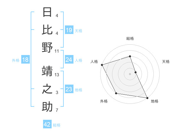 日比野 靖之助さんを姓名の画数から五運を鑑定