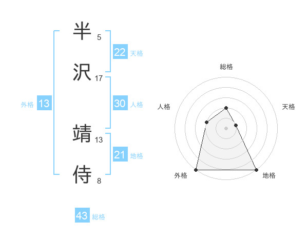 半沢 靖侍さんの外格は13画の5点!