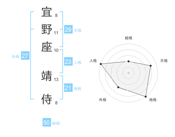 宜野座 靖侍さんを姓名の画数から五運を鑑定