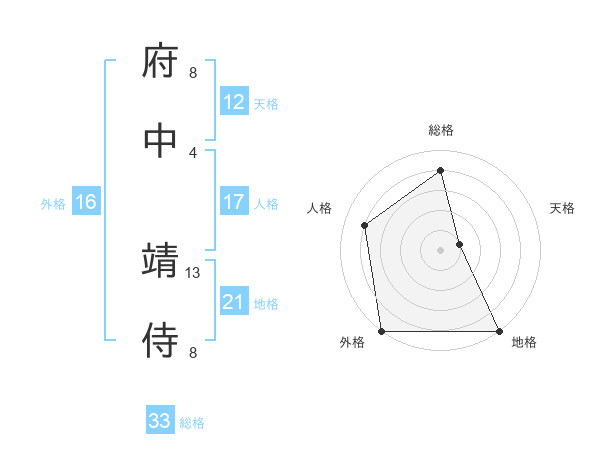 府中 靖侍さんの地格は21画の5点!