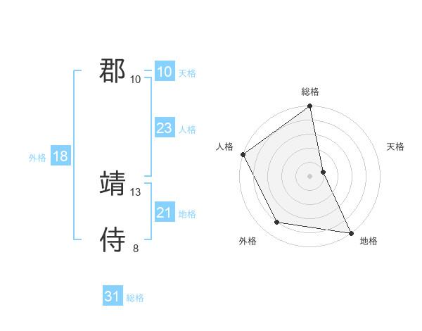 郡 靖侍さんを姓名の画数から五運を鑑定