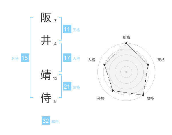 阪井 靖侍さんの総格は32画の5点!