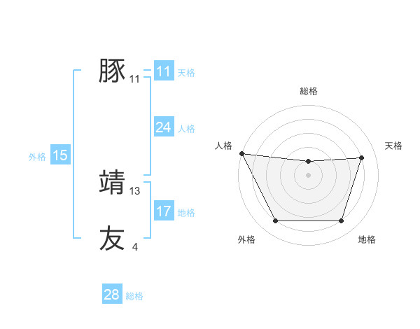 豚 靖友さんの地格は17画の4点!