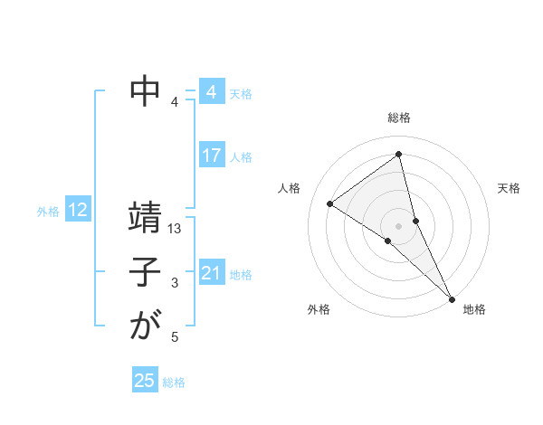 中 靖子がさんの地格は21画の5点!