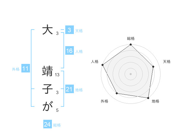 大 靖子がさんの地格は21画の5点!