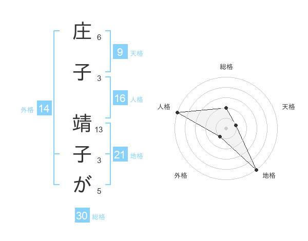 庄子 靖子がさんを姓名の画数から五運を鑑定