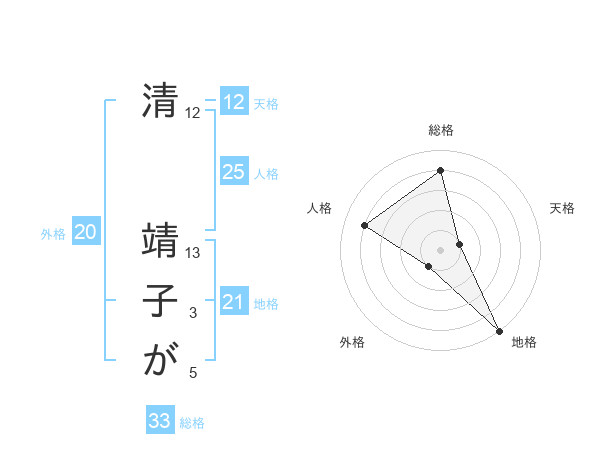 清 靖子がさんの外格は20画の1点!