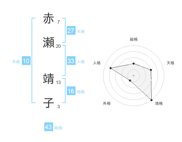 赤瀬 靖子さんの総格は43画の2点!