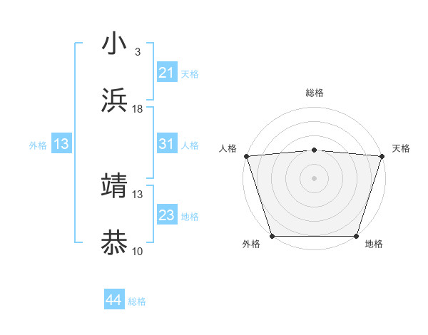 小浜 靖恭さんの外格は13画の5点!
