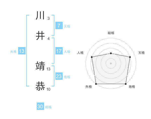川井 靖恭さんを姓名の画数から五運を鑑定