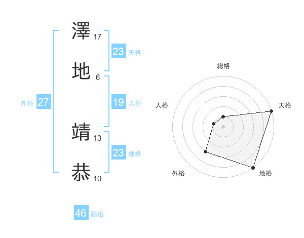 澤地 靖恭さんの天格は23画の5点!