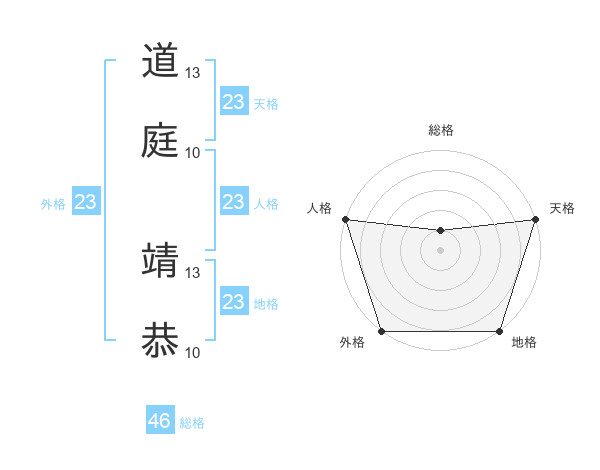 道庭 靖恭さんの天格は23画の5点!