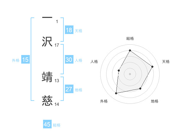 一沢 靖慈さんを姓名の画数から五運を鑑定