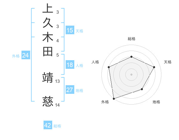 上久木田 靖慈さんの天格は15画の4点!