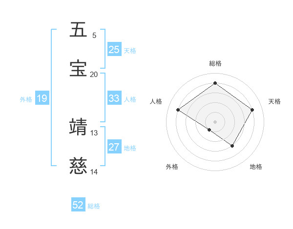 五宝 靖慈さんの総格は52画の4点!