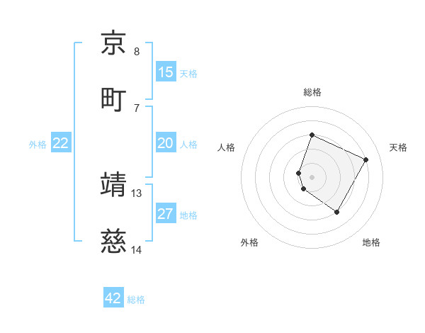 京町 靖慈さんの総格は42画の3点!