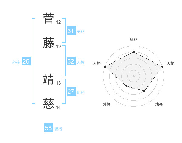 菅藤 靖慈さんの総格は58画の4点!