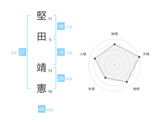 堅田 靖憲さんを姓名の画数から五運を鑑定