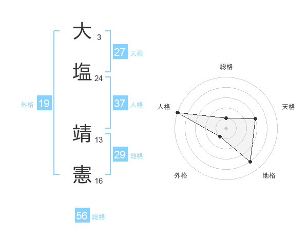 大塩 靖憲さんを姓名の画数から五運を鑑定