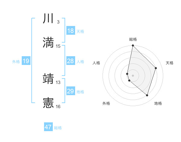 川満 靖憲さんを姓名の画数から五運を鑑定