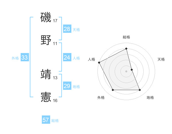 磯野 靖憲さんの総格は57画の4点!