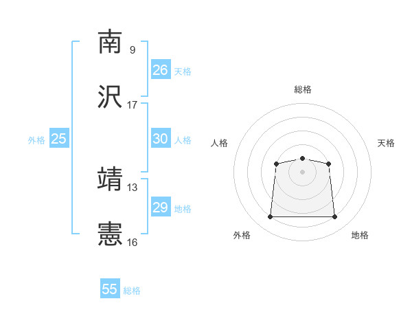 南沢 靖憲さんの総格は55画の1点!