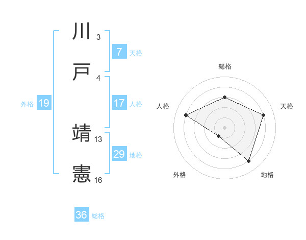 川戸 靖憲さんを姓名の画数から五運を鑑定