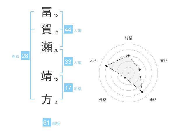 冨賀瀬 靖方さんを姓名の画数から五運を鑑定